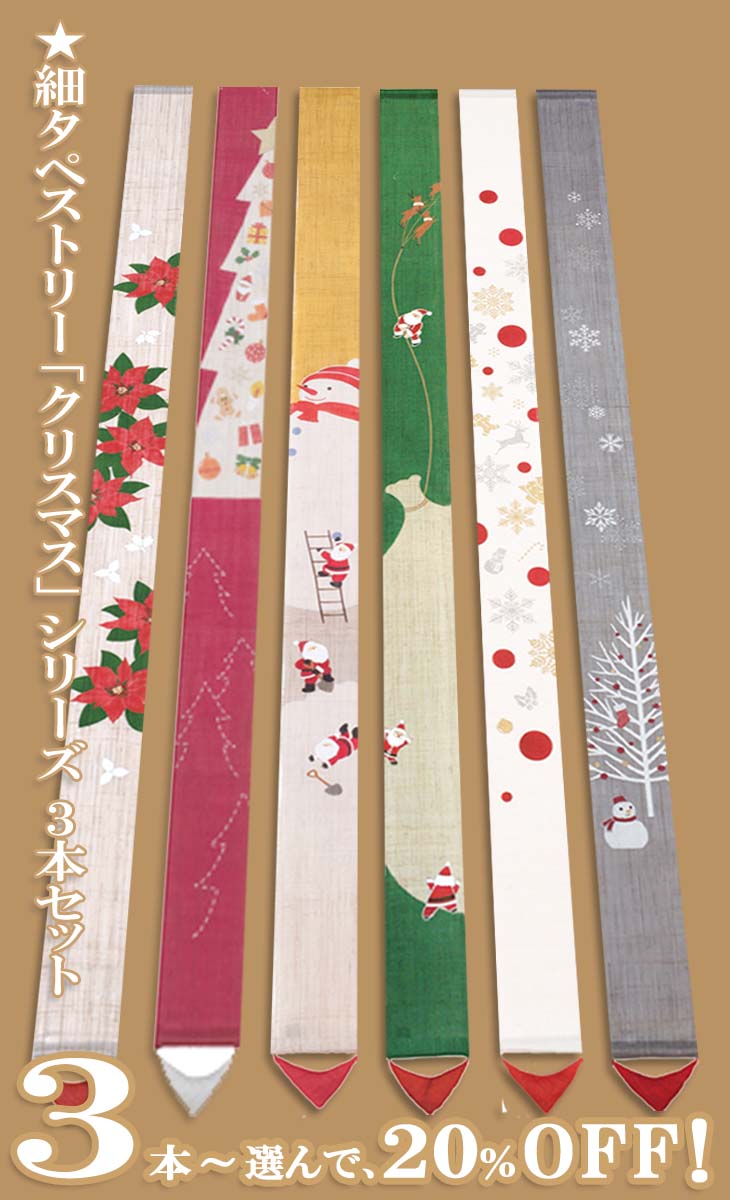 【クーポン!20%OFF】送料無料<3本選んで!20%OFF>細タペストリー「クリスマス デザイン」<3本選んで!20%OFF>●サンタの宝袋/スノーマン/ポインセチア/樹氷/クリスマス/クリスマスツリー