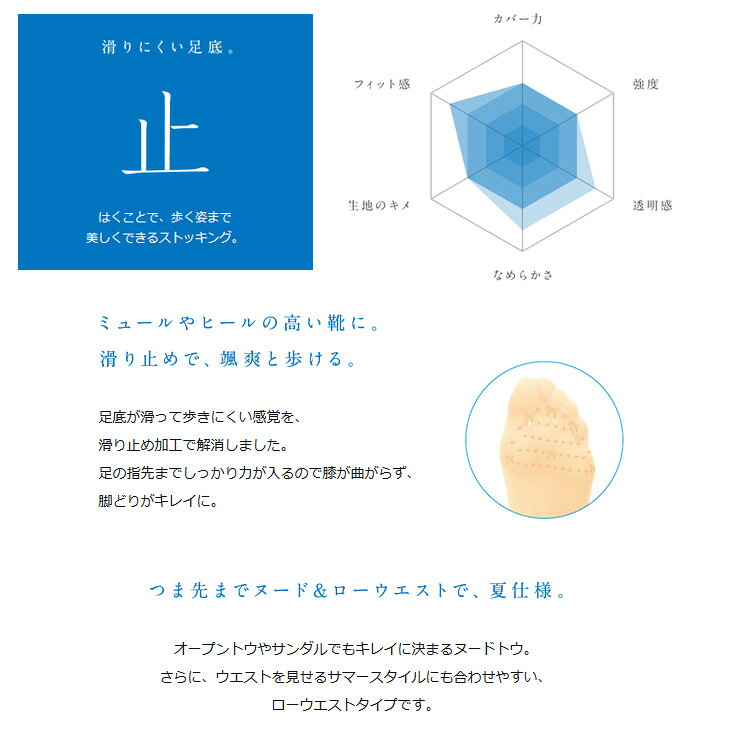 【止】はくことで、歩く姿まで美しく出来るストッキング。