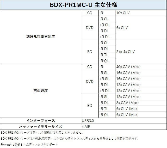記録品質測定用BDドライブ・型番:BDX-PR1MC-U・記録機能無し・測定アプリケーション付き・JIS Z 6017準拠の記録品質測定・USB3.0外付けタイプ・短納期対応可