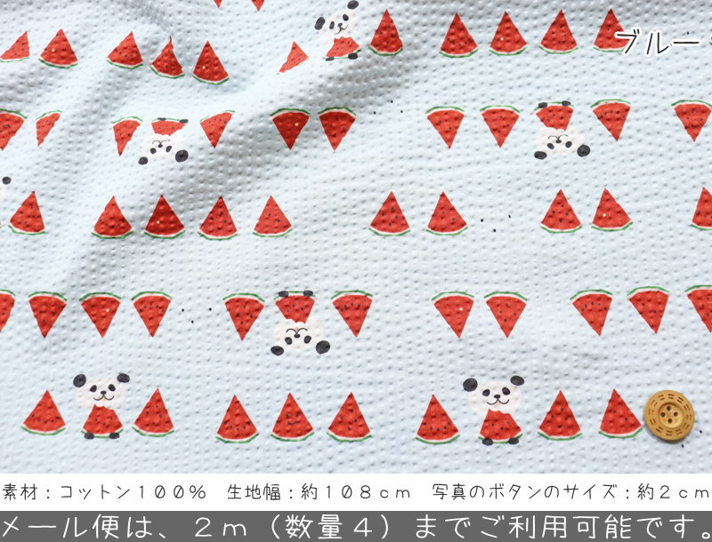『こどものえくぼ≪スイカとパンダ≫』コットン100%リップルプリント●素材:コットン100% ●生地幅:約108cm夏/男の子/女の子/ベビー/キッズ/綿/甚平/浴衣/ハンドメイド/手作り/ウェアー/小物/