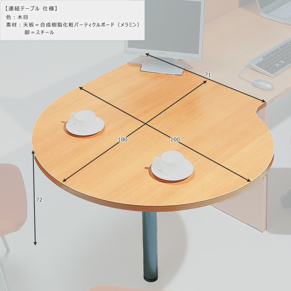 DETAIL ワークスペースと接客カウンターを隣り合わせることができる、奥行き710mmデスク専用の連結天板。